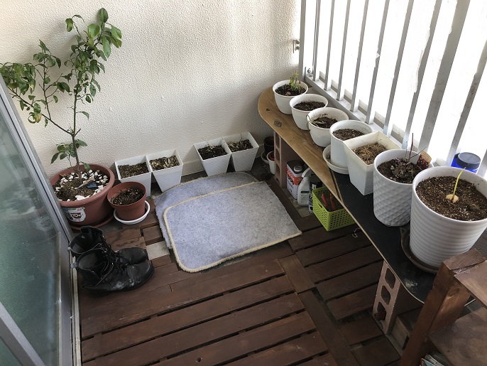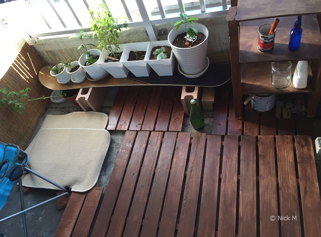殺風景なベランダを最低限の予算でウッドデッキ調の庭にする。