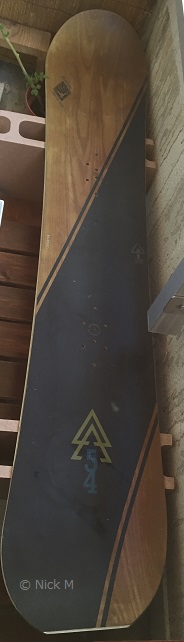 若い頃に使っていたスノーボードを天板に利用して鉢植えを置く棚を製作。