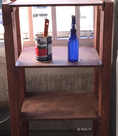 戸建てを建築していた現場から端材をもらってきて棚を作った。