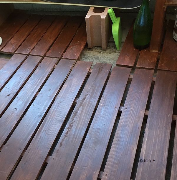 ホームセンターから手頃な値段のすのこを買ってきて木材用塗料を塗る。