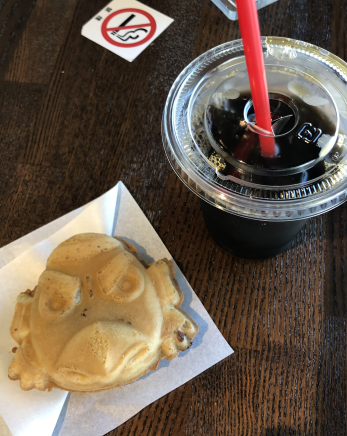 ケーブルカー駅付近のカフェで天狗焼きとコーヒー。